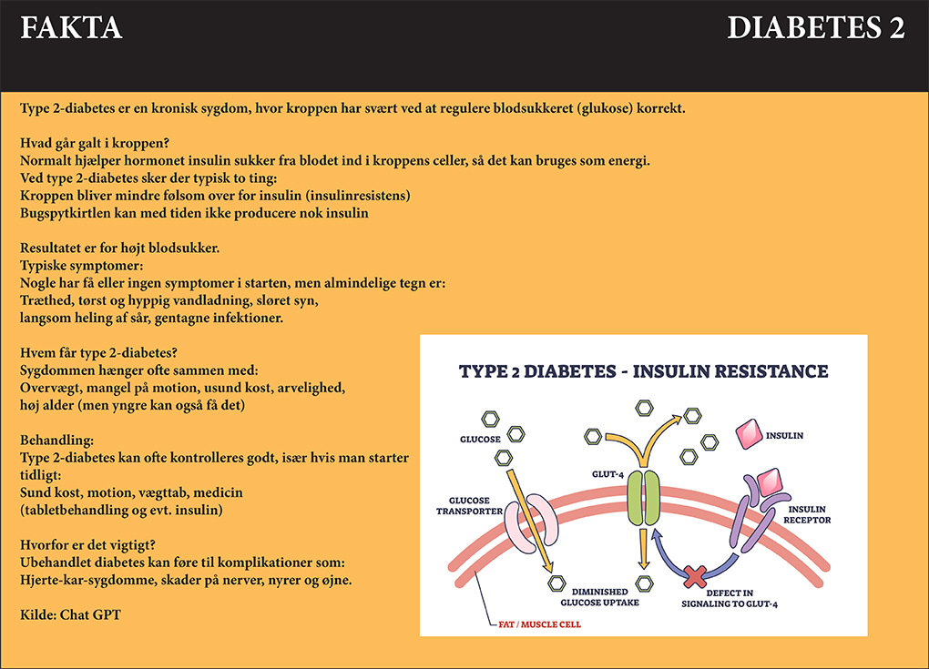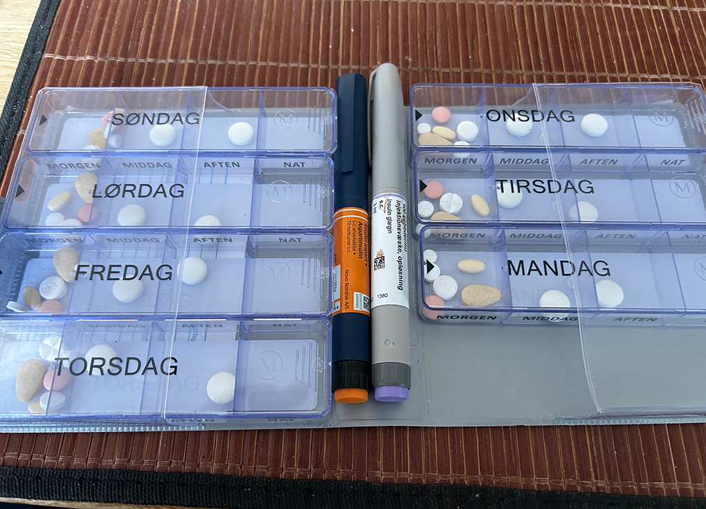 Det vil sige, at jeg fem gange i døgnet blev sukker-målt og alt efter værdien blev der stukket insulin fire gange i døgnet.