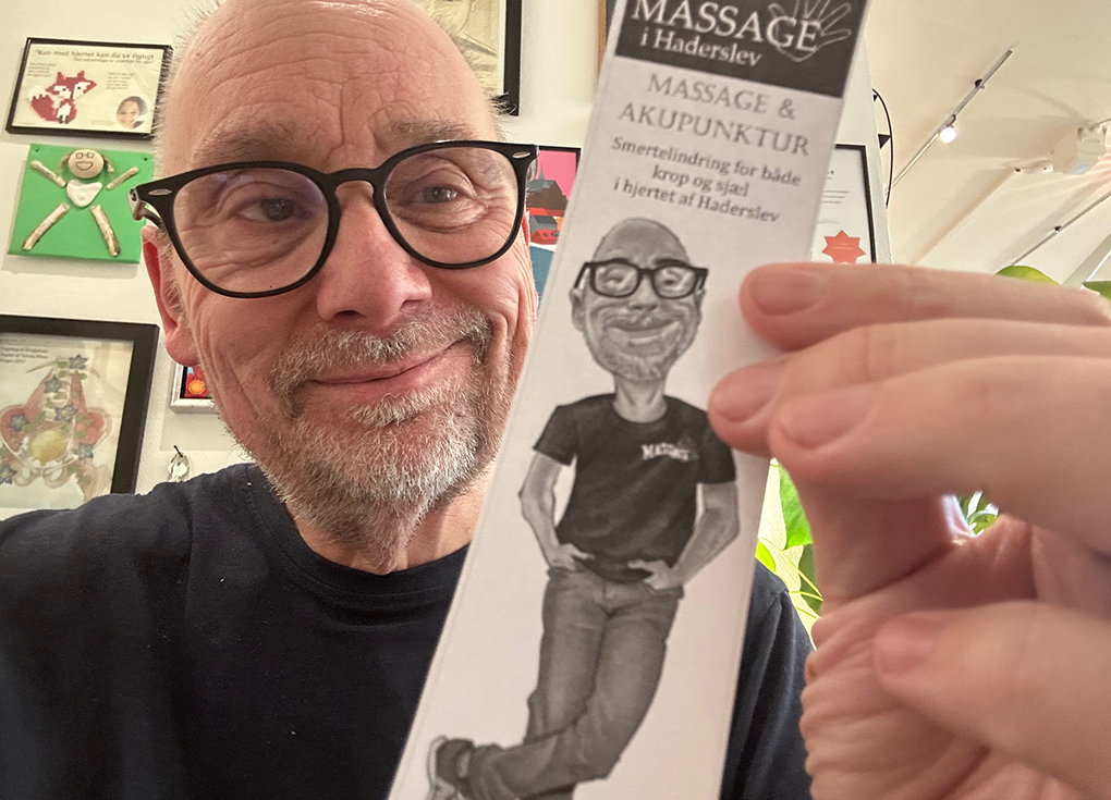 Inden længe kommer der nemlig nogle bogmærker, som man kan tage gratis på Haderslevbibliotekerne. Bogmærkerne findes i flere varianter og ét af dem har mig på fronten.