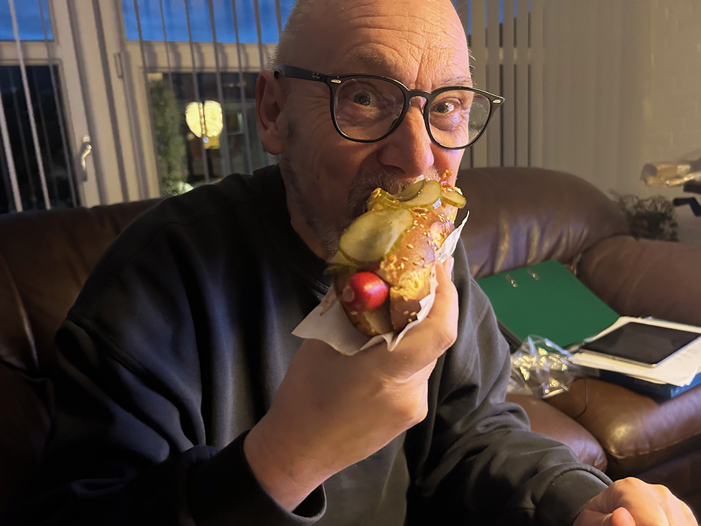 Men vi har også ‘skæverter’. Og vi planlægger dem, så man kan glæde sig lidt til dem. Nogle ‘skæverter’ kommer i forbindelse med fx familie arrangementer. Men også i hverdagen, som nu dagen i dag for eksempel. Da skal vi nemlig have hotdogs. Det er virkelig ikke nogen god menu, men når man synder engang imellem ‘craver’ man ikke de ulovlige ting.